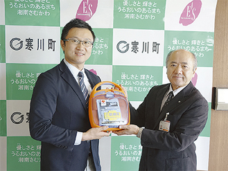 受け取った木村町長は「4人に1人が65歳以上となる高齢化社会を迎え、救急搬送の数も2000件を超えていると聞いています。訓練用の器材をいただけるのはたいへんありがたい。ひとりでも多くの命が助かることにつながれば」と話した。消防本部では「救命に必要な技術や知識をより多くの町民が学べるよう、寄贈していただいた器材をしっかり活用して、命の大切さを伝えたい」と話した。