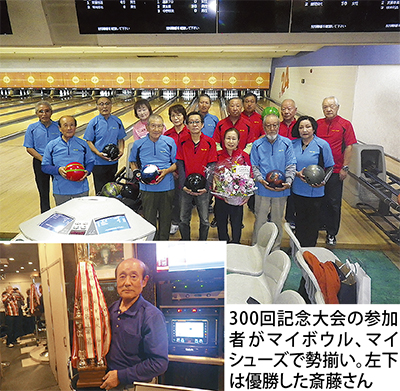 岡田の喫茶&パブ「フリータイム」が寒川セントラルボウルで毎月欠かすことなく開催しているボウリング大会が11月12日、第1回目の平成3年1月から数えて300回に到達した。