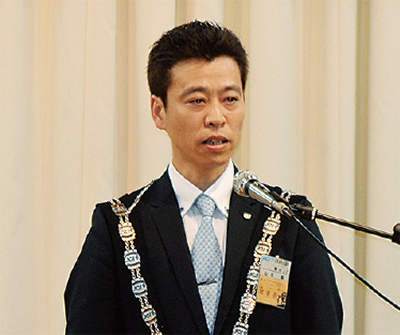 当日は1月度例会通常総会も行い、山本毅理事長による新体制がスタート。「時代の変化に流されず、活動の原点を追求する。メンバーを50名とすべく関係諸団体の協力をお願いしたい」とあいさつした。