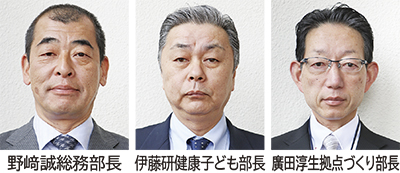 【部長級】◎野崎誠/総務部長(健康子ども部長)、◎伊藤研/健康子ども部長(拠点づくり部長)、◎廣田淳生/拠点づくり部長(拠点づくり部参事兼田端拠点づくり課長)昇任