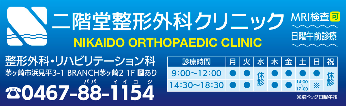 高齢者に限らず、慢性疼痛の患者数は増え続けているという。市内の総合病院で15年間にわたり地域医療を支え続け、昨年BRANCH茅ヶ崎2内に二階堂整形外科クリニックを開業した二階堂宏治院長は「整形外科医として患者様の為にできることは何なのか改めて考え直したい」と話す。