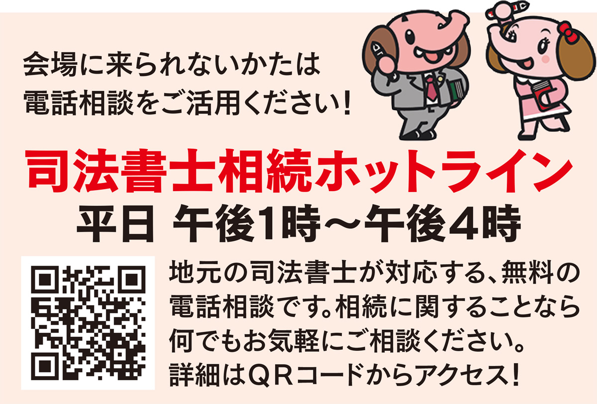 高度な法律知識で身近な問題に対応してくれる「あなたの街の身近な法律家」司法書士さんに、無料で相談できるチャンス。