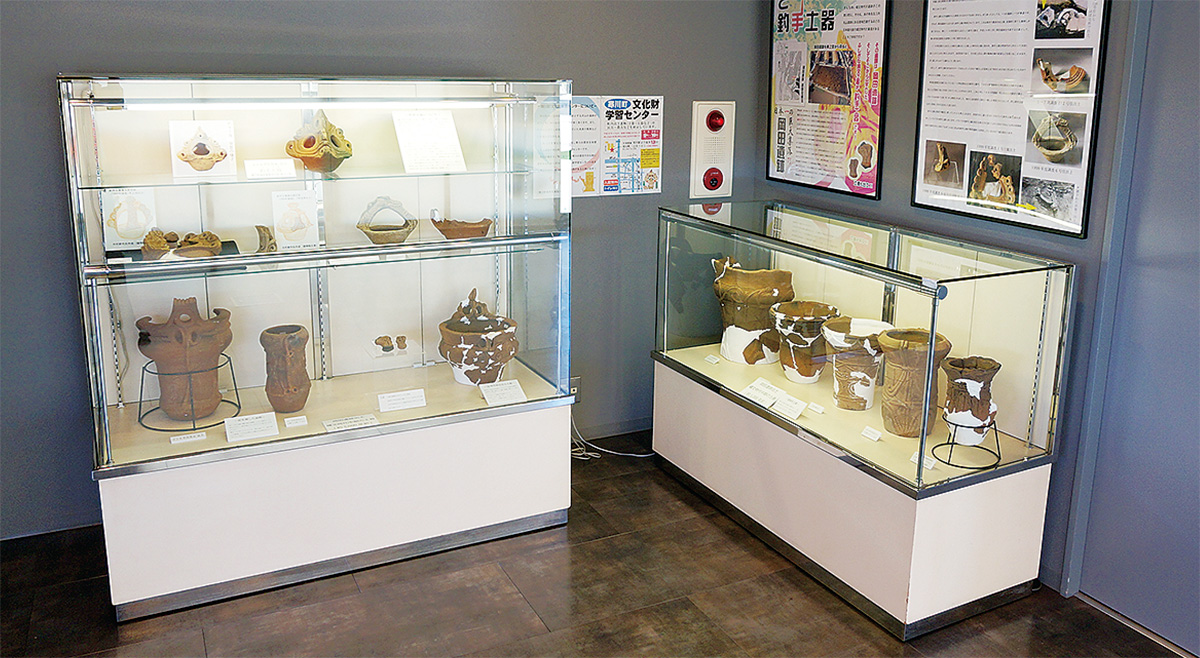 寒川町指定重要文化財「釣手土器」などの縄文土器が10月1日から寒川駅前の寒川観光協会で移設・展示されている。