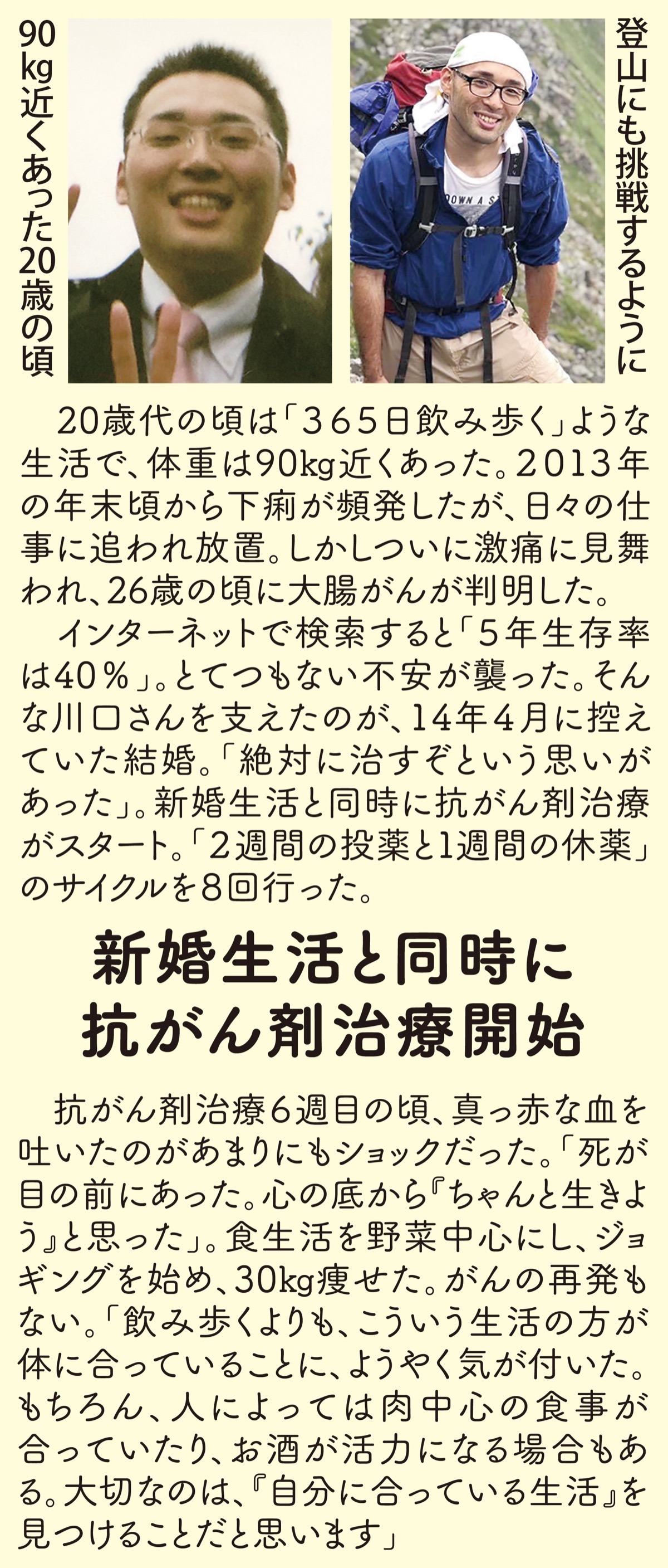 川口健太朗さん(32・宮山在住)が、自身の大腸がん経験を生かした活動を展開中だ。「がん患者に笑顔になってもらうこと」を掲げ、茅ヶ崎を中心に、患者の悩みや苦しみに寄り添う場所を生み出している。