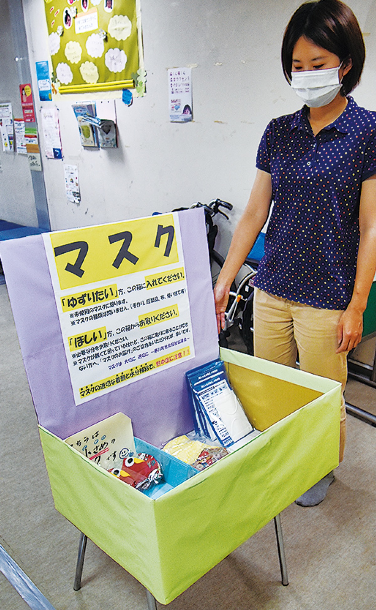 寒川町健康管理センターに、布マスクを入れた箱が登場した。使わない未使用のマスクを入れてもらい、必要な人に使ってもらおうと設置したもの。国から届いた通称「アベノマスク」を入れる人や、手作りのマスクを150個以上箱に寄贈した人も。中には可愛らしい子供用マスクもあり、検診に訪れた親子連れに人気という。