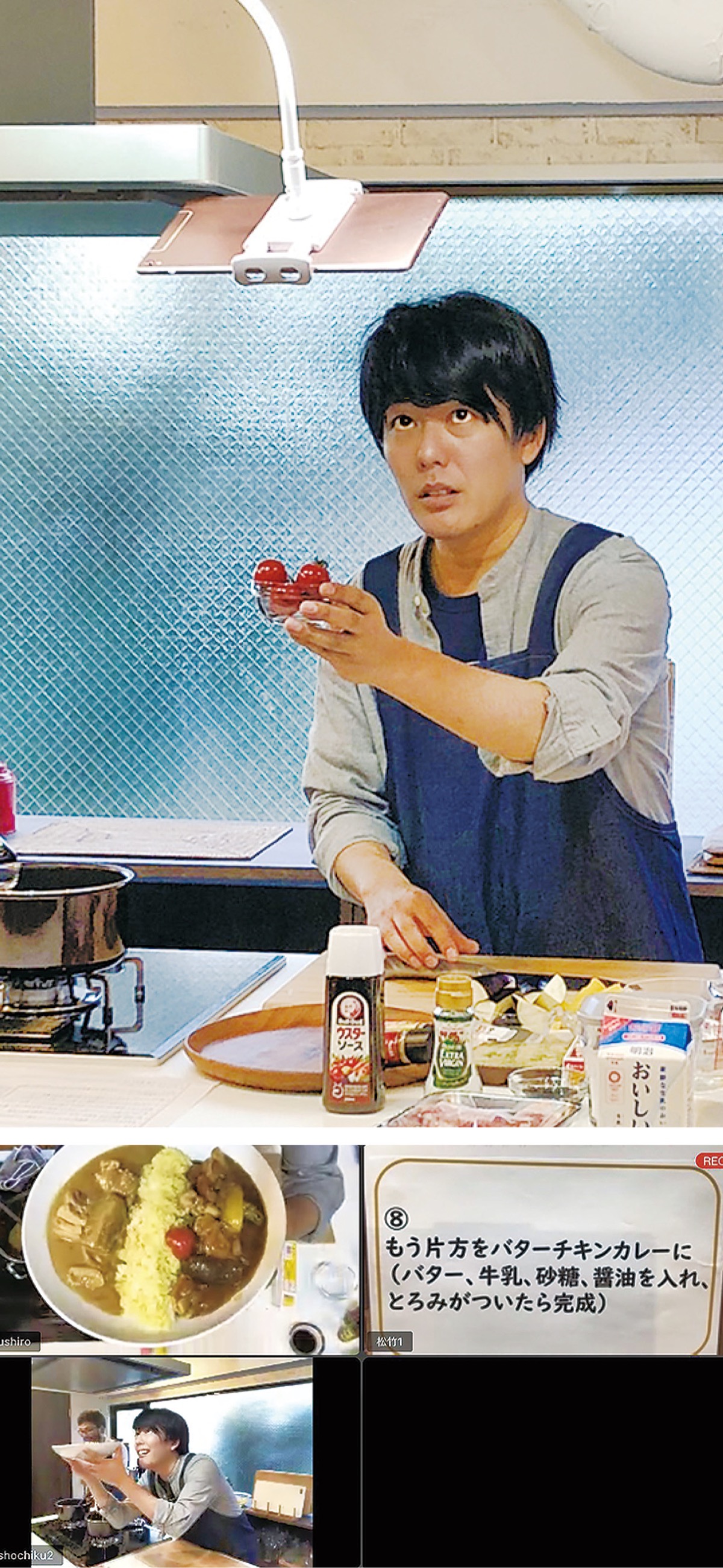 6月にウェブ会議用のアプリZOOMを通じて1回目(献立・あいがけカレー)を開催した。8月8日にも第2回を開催予定で「濃厚!カルボナーラと手作りドレッシングのサラダ」がテーマ。チケットなど詳細はうしろシティの公式ページ(松竹芸能)参照を。