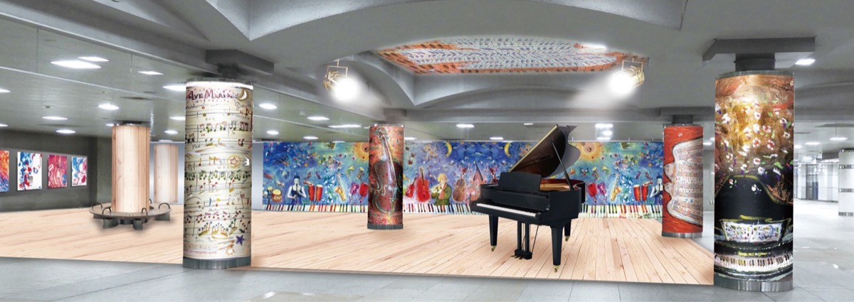 湘南台駅地下広場を、アートを通じた新たな交流の場にしようと、市民団体「湘南台アートスクエアプロジェクト」がネットでクラウドファンディングを開始した。同プロジェクトではこの夏、通行人が自由に演奏できるストリートピアノを設置し、好評を博した。目標金額は1千万円。プロジェクトの目玉は、地元の画家・廣田雷風さんによる巨大壁画。廣田さんは、これまでホテルや医療施設などの壁画を多数手掛けている。実現すれば「音楽があふれる湘南台の街」をテーマにした壁画や柱などが広場を彩る予定だ。