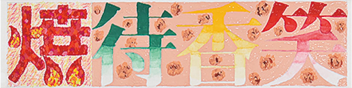 寒川東中3年生が8時間で鉛筆を手に描いた自画像が中学校美術作品展(茅ヶ崎市美術館で12月6日まで)に並んでいる。新型コロナの影響で様々な状況で我慢をしなければならない状況でも明るく過ごす3年生。瞳の奥まで丁寧に描いた作品や、部活動を思わせる背景と組み合わせた自画像も。館内には旭が丘中生徒の「なぞなぞ漢字アート」=写真左や寒川中生徒によるオリジナル名刺なども展示中。