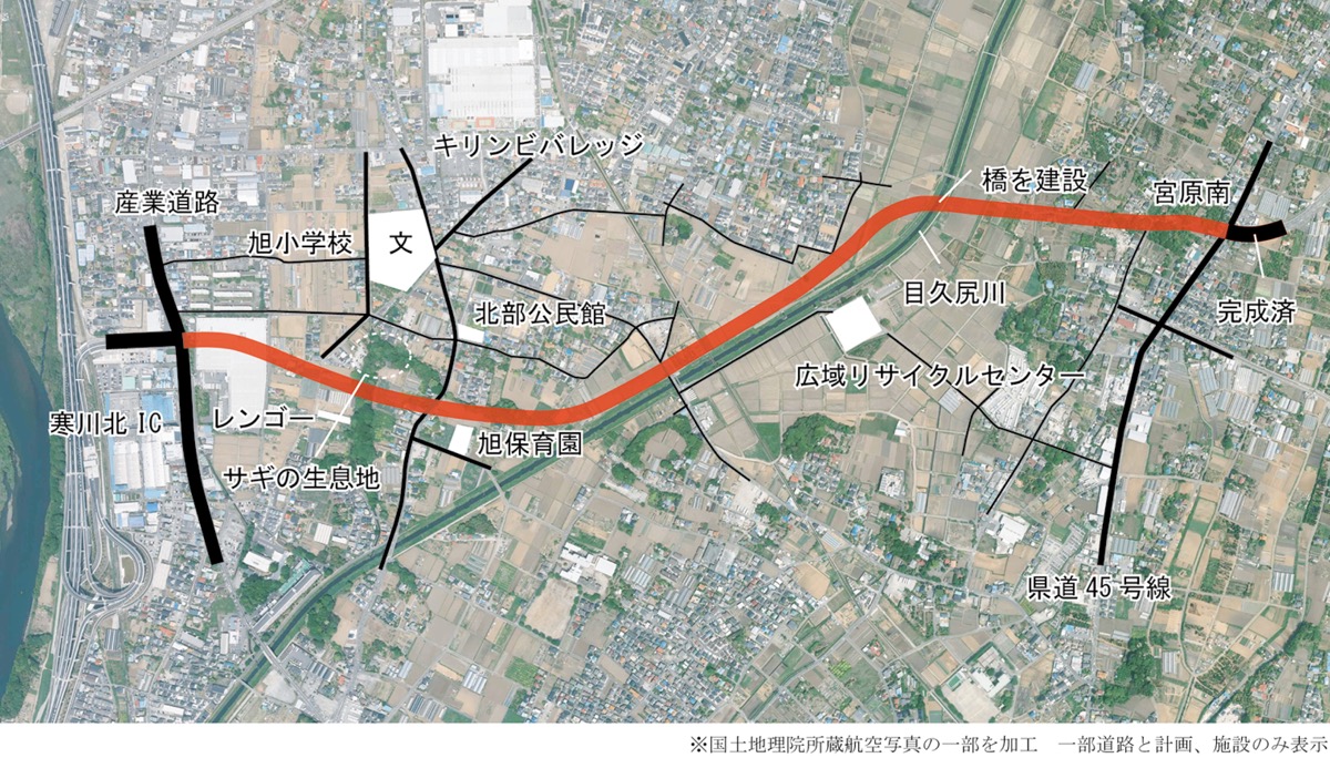 平成25年度に事業に着手し、意見交換や環境調査なども行われた。現在は道路設計の終盤で、地元向けの説明会を通じて理解が得られれば年度内から用地取得を始める。中でも目久尻川の橋は工事に日数がかかるため、優先的に取得する方針。