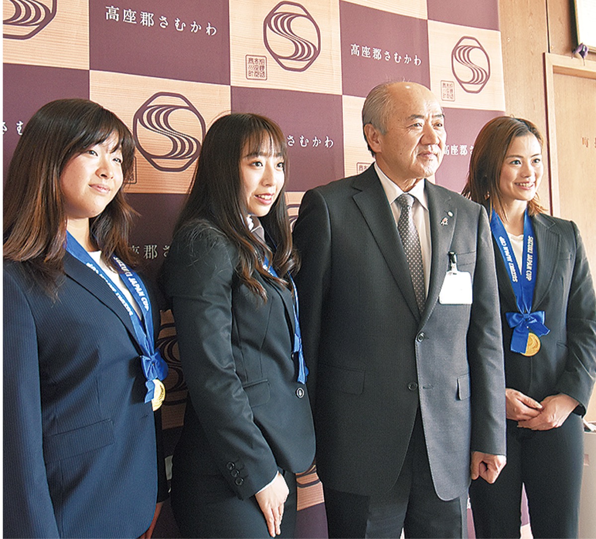 エアロビックの国内最高峰大会「スズキジャパンカップ」で個人部門の銅メダルに輝いた鈴木風菜さん(アステム湘南ヴィグラス)が、12月21日に町長室を訪れた。