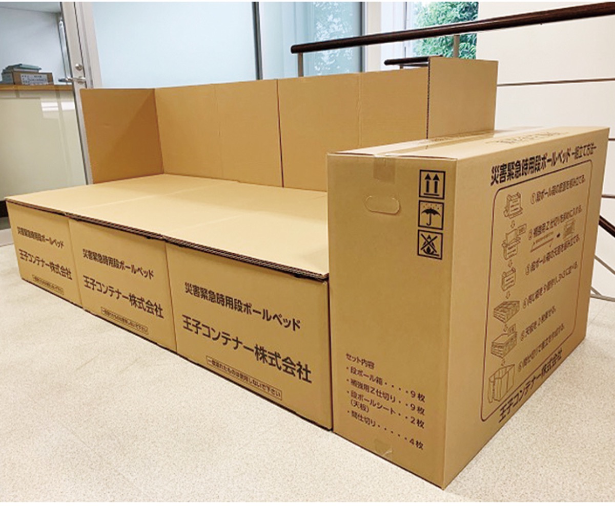 災害発生時に町が要請し、段ボールベッドや段ボールパーテーションなどの物資の供給を受ける。同社製品は設営のしやすさが特長という。避難所にはすでに簡易ベッドやパーテーションの備えもあるが、避難者がより過ごしやすい環境作りのため協定を結んだ。