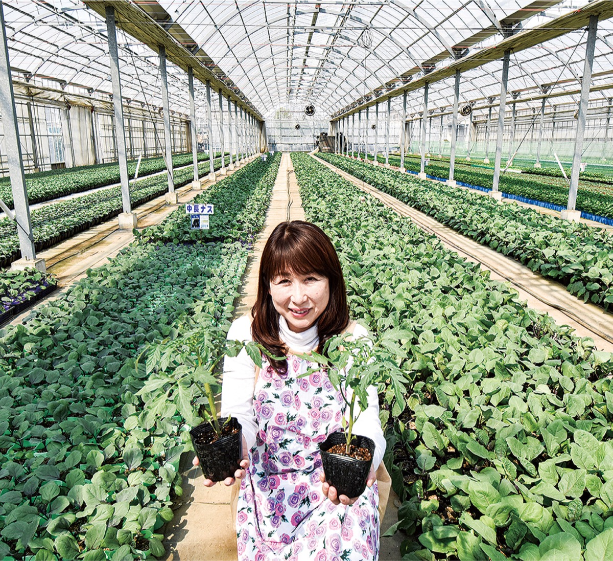 宮山駅近くの常盤園芸で、野菜苗の販売が最盛期を迎えた。ハウス内にはトマトやピーマンなど80種類の苗が何列も並び、来店客が真剣に苗を見定めていた。