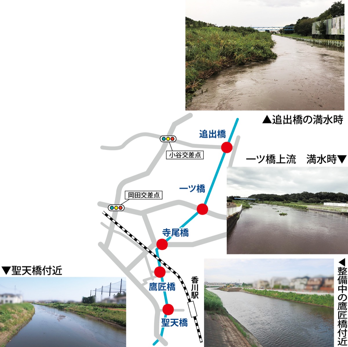 そうした中、県は、いよいよ岡田8丁目地区を含む一ツ橋から追出橋の間の川幅を広げる護岸整備工事が令和3年度〜6年度にかけて進められることになりました。また、遊水地の整備については、経済性、施工性、環境面などを総合的に考慮して茅ヶ崎市行谷地区を整備予定地とし、一ツ橋から追出橋までの間を対象に貯水容量約9万㎥、面積は5・5万平方メートルの設計に着手しました。工事着手までにはまだ時間を要しますが、以降、用地取得が順次進められます。工事期間中は地域住民の皆様にご不便をお掛け致しますが、ご理解・ご協力のほど宜しくお願い申し上げます。