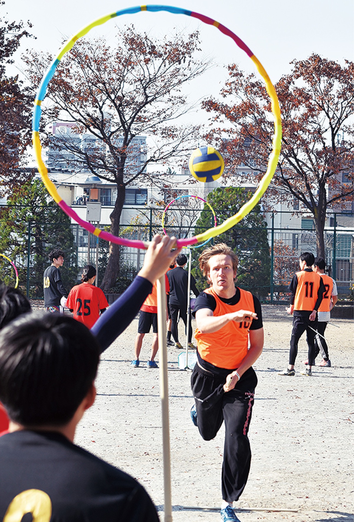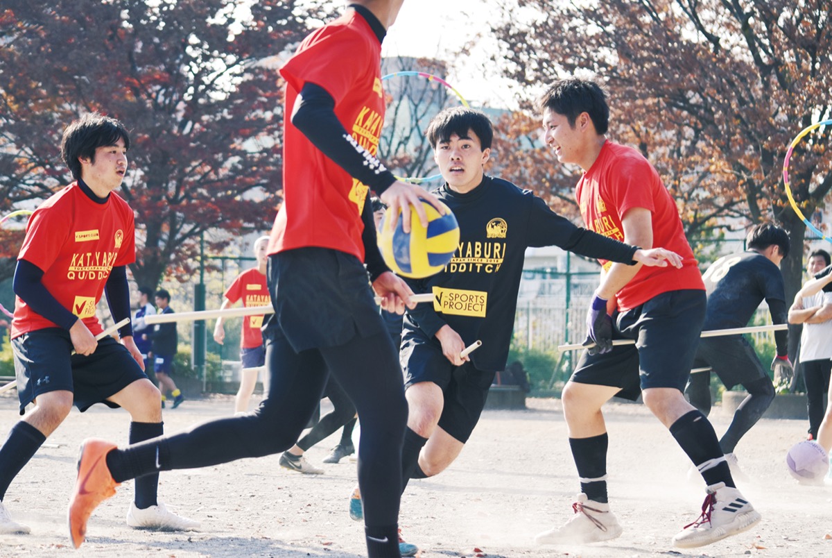 秋晴れの新宿の公園で、宮山在住の会社員・関根玄太さん(23)が、土埃を上げてボールの奪い合いを繰り広げていた。バスケットボールのようだが箒(ほうき)に見立てた棒にまたがっている。映画『ハリー・ポッター』シリーズから生まれたスポーツ「クィディッチ」だ。
