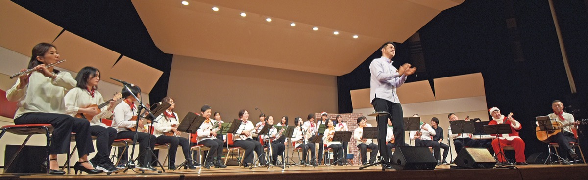 「さむかわ音楽ひろば」のクリスマスコンサートが12月5日に町民センターで開かれ、ウクレレやコーラスなどの地元音楽グループがクリスマスにちなんだ曲を披露した。