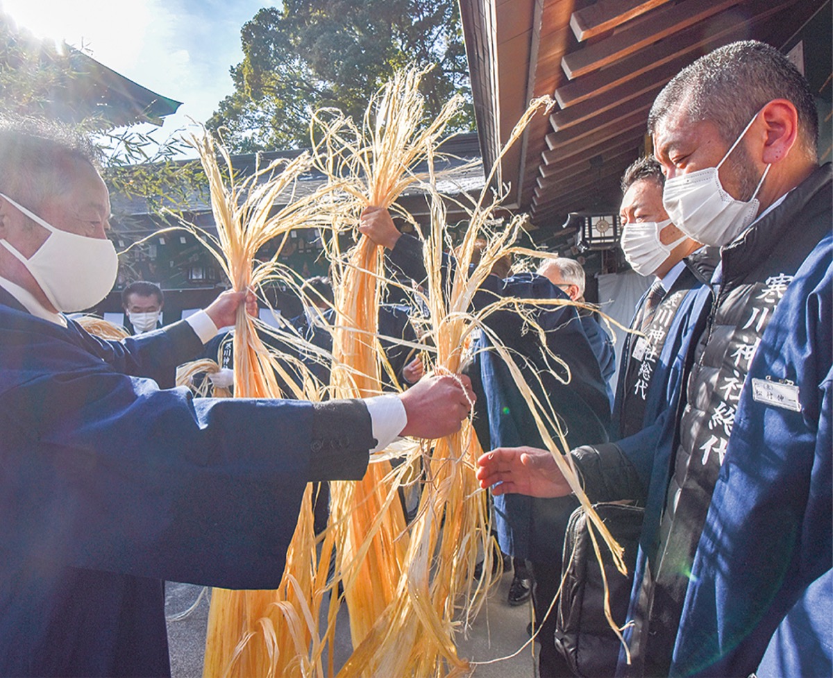 寒川神社で1月8日に武佐弓祭が行われた。2人の神職が「甲・乙・ム」の字を組み合わせた「鬼」の字の的に向かって矢を放ち、悪疫を退散させ、吉凶を占う神事。矢が音を立てて飛び、境内に「当たり」の声と、どよめきが響いた。