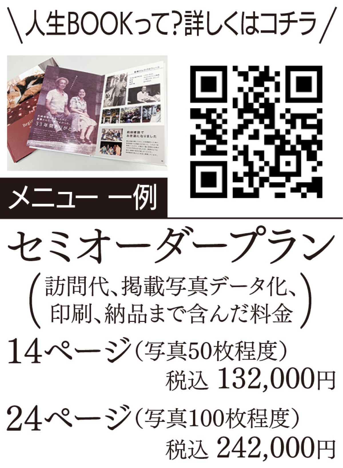 生前整理で相談の多い「膨大な写真の整理」には同社が手掛ける「人生BOOK」にまとめるのがおすすめ。依頼者を訪問し、思い出の写真を厳選。コメントや家族の歴史も添えて一冊に製本する。相談見積無料。まずは気軽に問い合わせを。