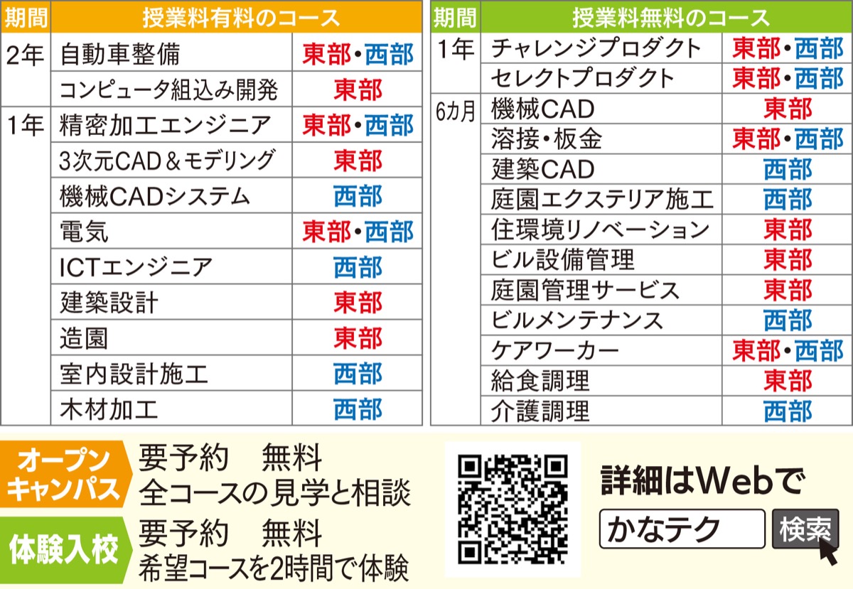 県内に2校ある県立の「かなテクカレッジ」が4月生を募集している。同校では新卒・転職・再就職の方などが受講し、約9割が就職している。募集締切は2月7日(月)。募集案内は同校やハローワーク等で配布中。入校選考(国語・数学・面接)は2月20日。