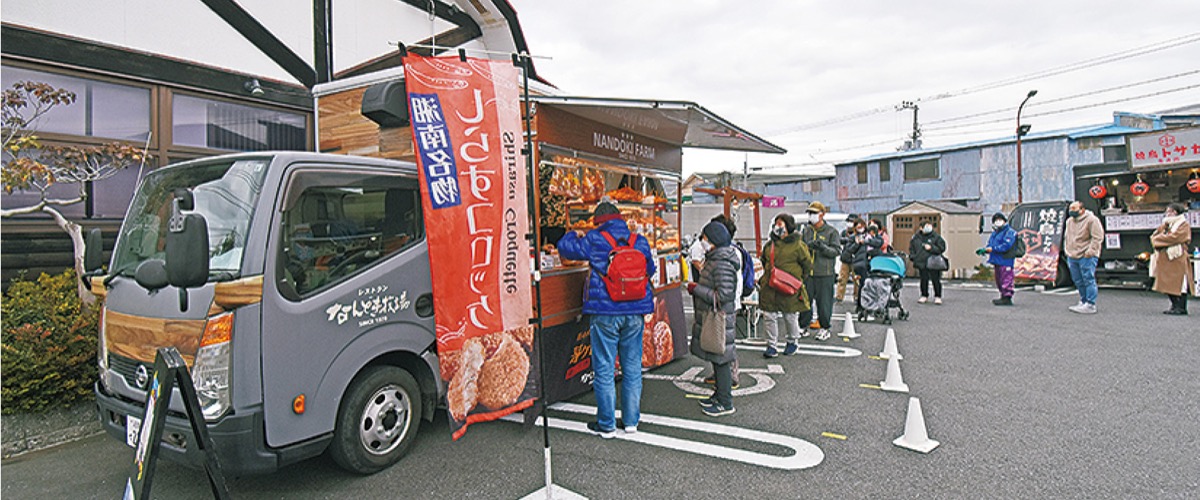 近くのJAわいわい市では定期的にキッチンカーが出店しており、産業道路沿いの「なんどき牧場」(茅ヶ崎今宿)では毎月キッチンカーなどのマルシェを開催。1月27日の開催時は5台ほどが集まり、長い行列ができていた。茅ヶ崎市では市庁舎前で定期的にキッチンカーイベントが開かれ、藤沢市役所とも連携。相互の市のキッチンカーが庁舎に出店するなど交流も進む。