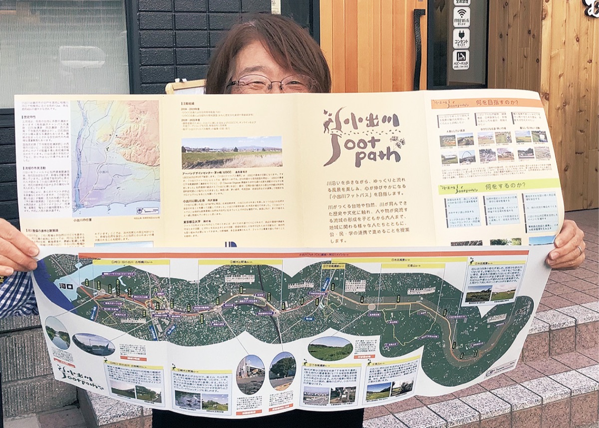 観音折りA4サイズの冊子では、前進団体「まち景まち観フォーラム・茅ヶ崎」から現在までの知識の蓄積と成果を踏まえ、昨年5月発行の季刊紙の内容も踏襲。中面では、河口から藤沢市北部にある源流までの全貌を地図で紹介。散策ルートを【1】河口・旧小出川・古相模川、【2】樹木と野鳥、【3】下寺尾遺跡、【4】里山、【5】水田風景などに分類し、見どころや特色を写真を交えながら解説している。高見澤和子理事長は「川全体を俯瞰し、幅広い視点でまとめた資料に仕上がった。今までの活動や視点が、10年・20年後などに役立つきっかけになれば」と語る。