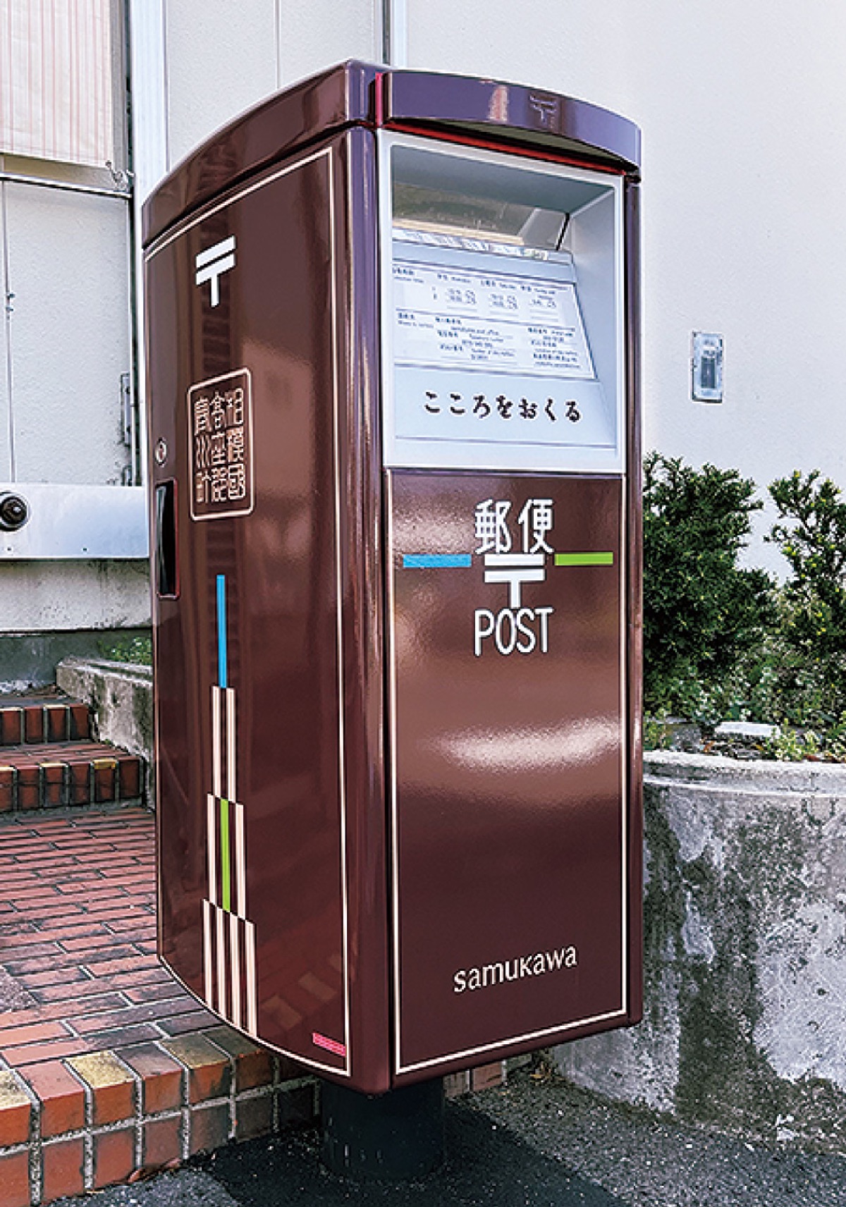 寒川町のブランドスローガン「『高座』のこころ。」のメインブランドカラーを使用し、全体をラッピングした郵便ポストが、JR寒川駅北口前と寒川町役場前に設置され、3月28日から供用が開始された。