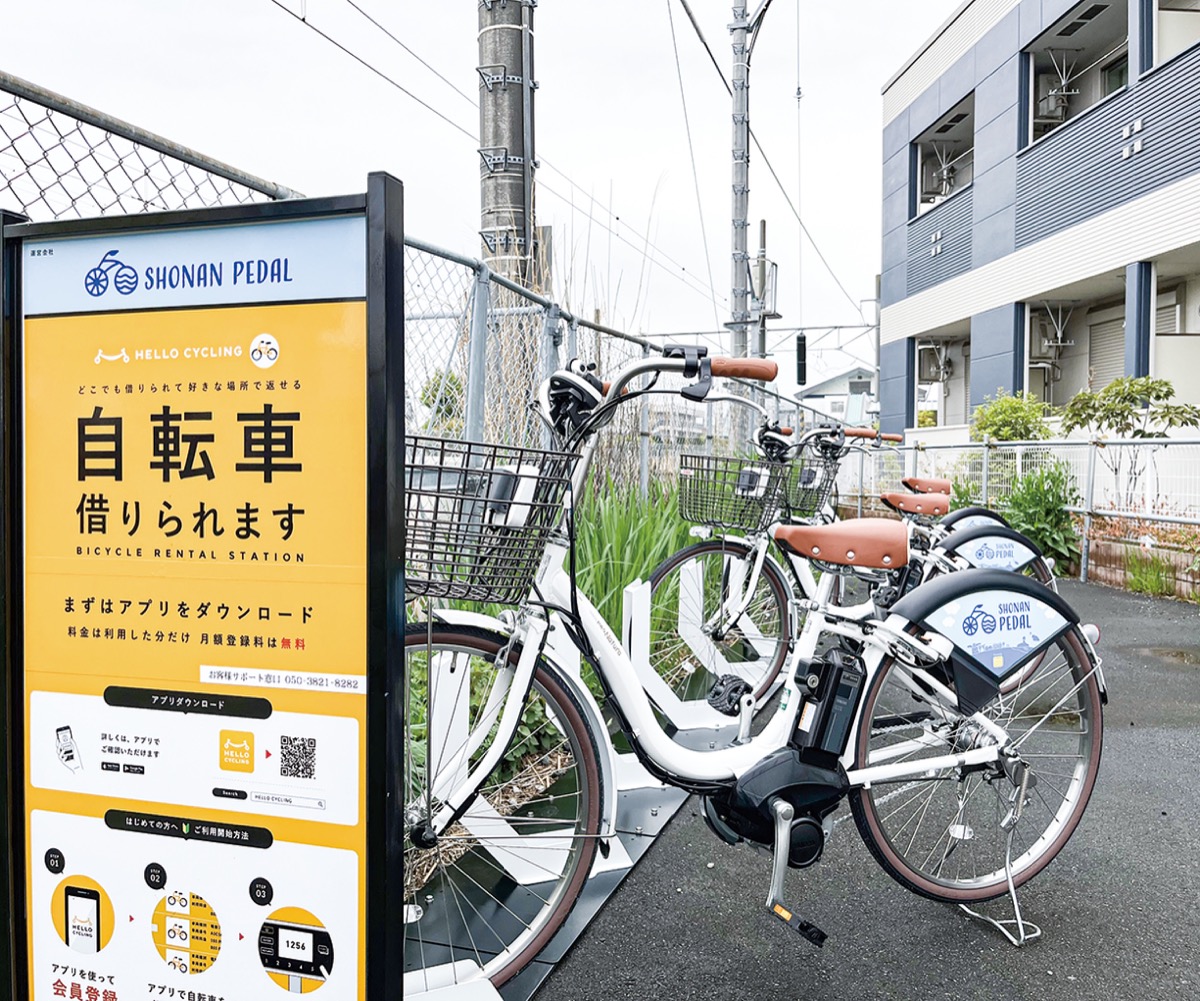 使用するのは、江ノ島電鉄(藤沢市)が運営するサービス「SHONAN PEDAL」。Open Street(東京都)の手がけるアプリ「HELLO CYCLING」をダウンロードして利用することで、近場にある自転車の検索から予約、支払いをスマートフォンで行える。