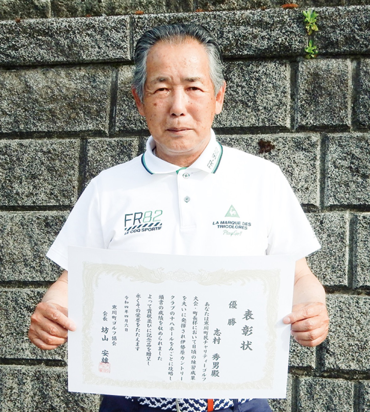 68人が参加し、志村秀男さん(宮山在住)がネット69・4で優勝した。ベストグロスは79でラウンドを終えた桑沢裕さん(倉見在住)だった。チャリティー収益は町に寄付される。