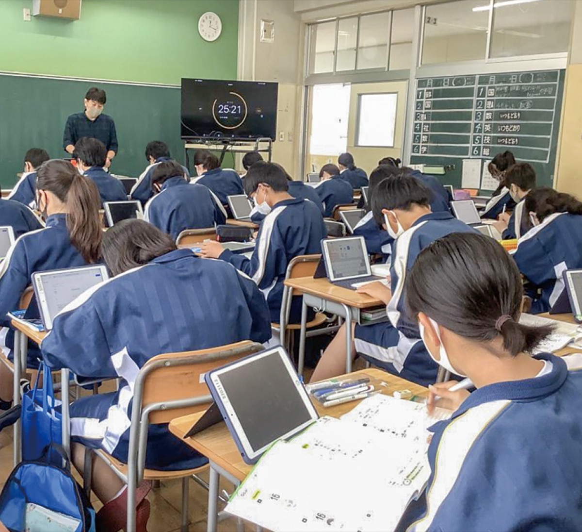 小中学校の各教室に設置される「大型モニター」は、小学校で129台、中学校で50台が導入される予定で、1クラス1台配備される。町は、「感染防止対策としてはもちろん、個別最適な学びを提供し、意見の全体共有や他者と協働する力を育むことでグローバル教育の実現を目指す」とする。