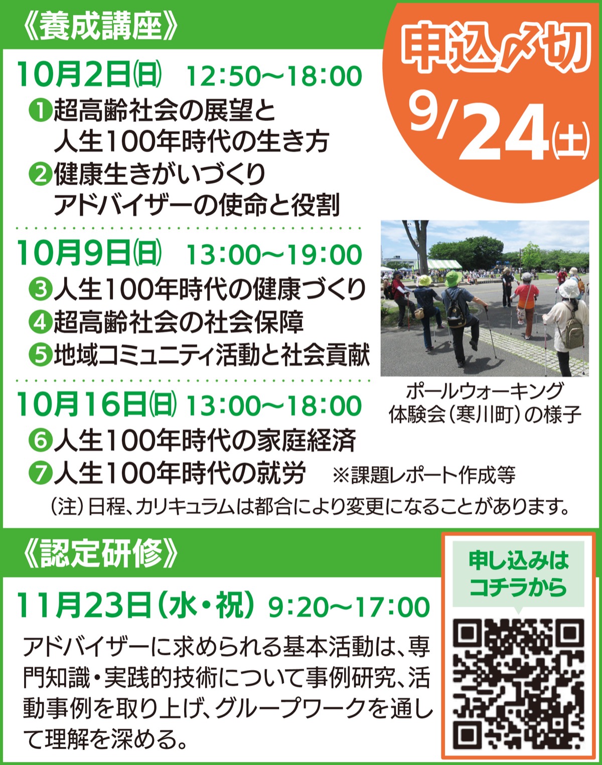 健康・生きがいづくりの啓発や仲間づくりの支援、社会参加を通して地域に貢献する役割を担う同アドバイザー。資格取得後は、自治体・企業等と協働した支援活動、ポールウォーキング活動、後見人活動など、さまざまな活躍の舞台が用意されている。