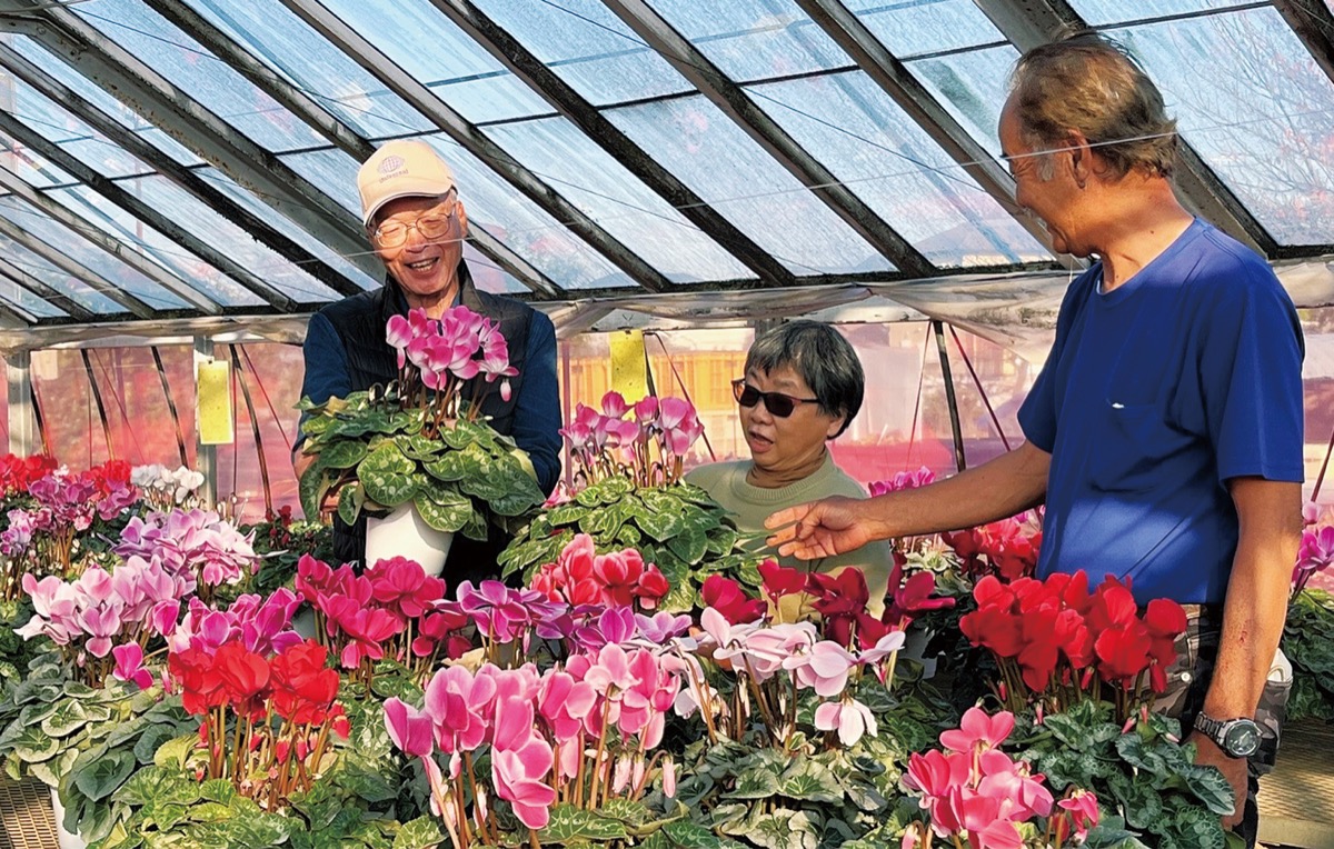 同園のシクラメンは、農園での直売のほか、町内ではわいわい市で購入できる。今年は猛暑や台風の影響で「開花が遅い」と言い、これからが本番だ。