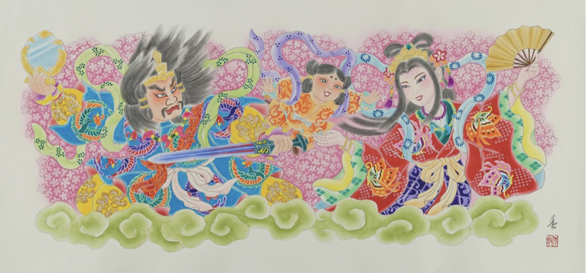 北村さんは「本作品は家族の絆をテーマに、神々がこの世を祝福しているかのような姿にすることで、来年が皆さまにとって幸福でありますよう祈念して制作致しました」とコメントを寄せた。