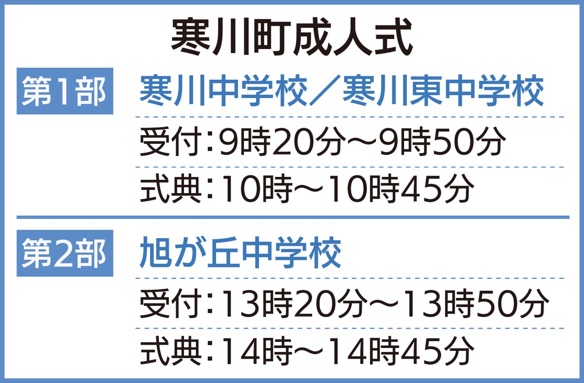 昨年4月から、民法の改正により成人年齢が20歳から18歳に引き下げられたが、町では従来通り当該年度に20歳を迎える人を対象に成人式を開催する。18歳を対象とした場合、その多くが進学や就職など進路選択を控えた年齢であることから、本人や家族の負担が大きいことなどが理由。