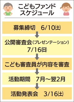 希望者は、応募用紙を6月10日(土)までに提出した後、7月16日(日)の公開審査会でプレゼン。採択者は、その活動を来年2月までに行い、3月に発表する。また、提案者と同時に、小学3年生から18歳までの審査員も募集している。