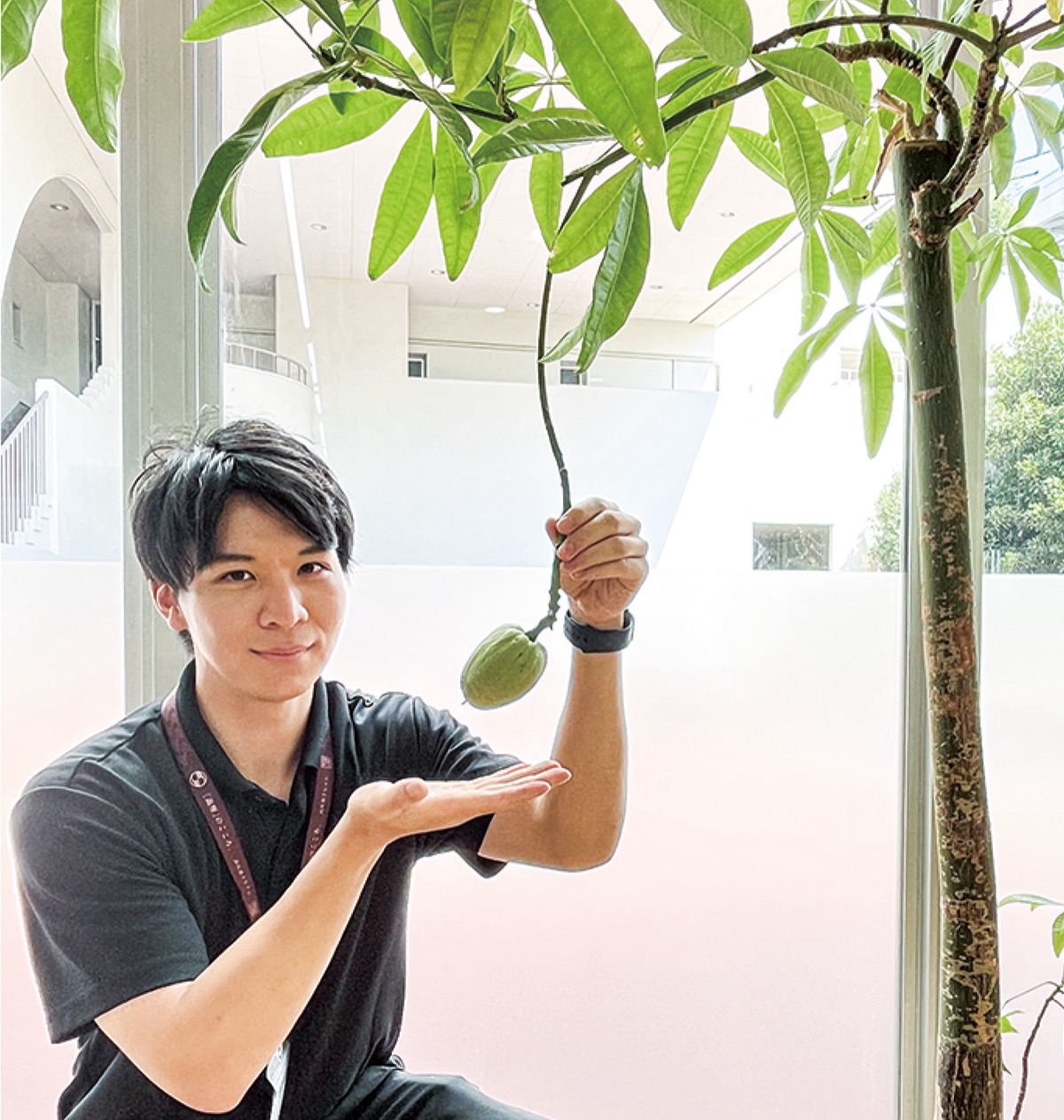 パキラの花言葉は「快活・勝利」。職員らは「日本ではなかなか見られないとのことです。ぜひ“幸運な木”を見に来てください」と話している。