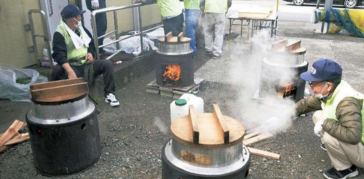 また、大規模な炊き出し訓練を毎年実施。昨年10月、一之宮集会所を会場にした訓練では、大釜で米を炊くところから始め、900パック・1800個のおにぎりを約3時間で完成させた。「これまで積み上げてきた訓練の成果が実証された」と齋藤会長。今年1月にはカレーライスや豚汁の炊き出しも行い、子どもから高齢者まで多くの地域住民が参加した。