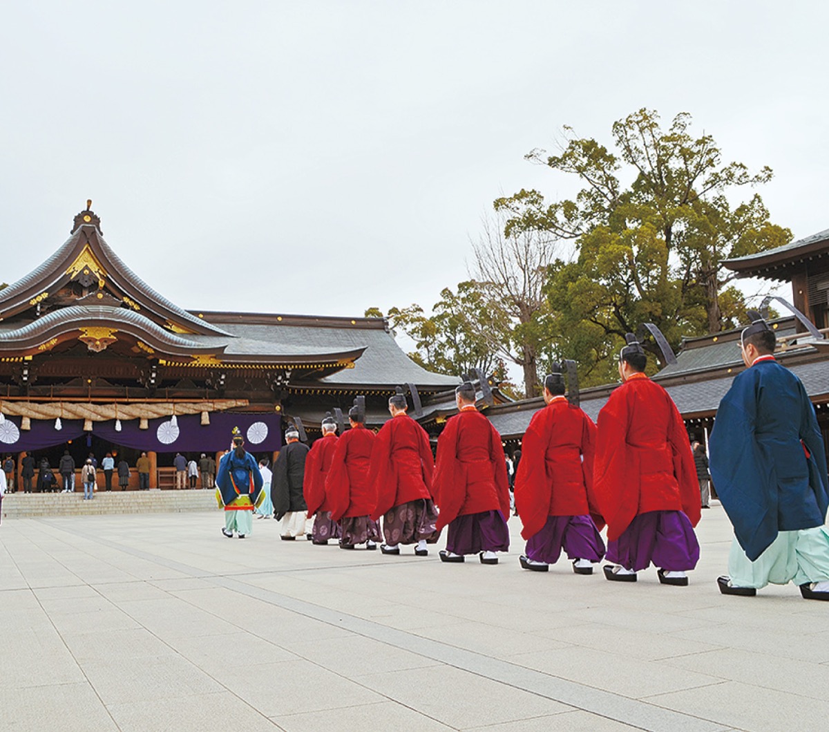 寒川神社で2月17日、春の耕作開始にあたり1年間の五穀豊穣を祈る「祈年祭」と「田打舞神事」が開催された。