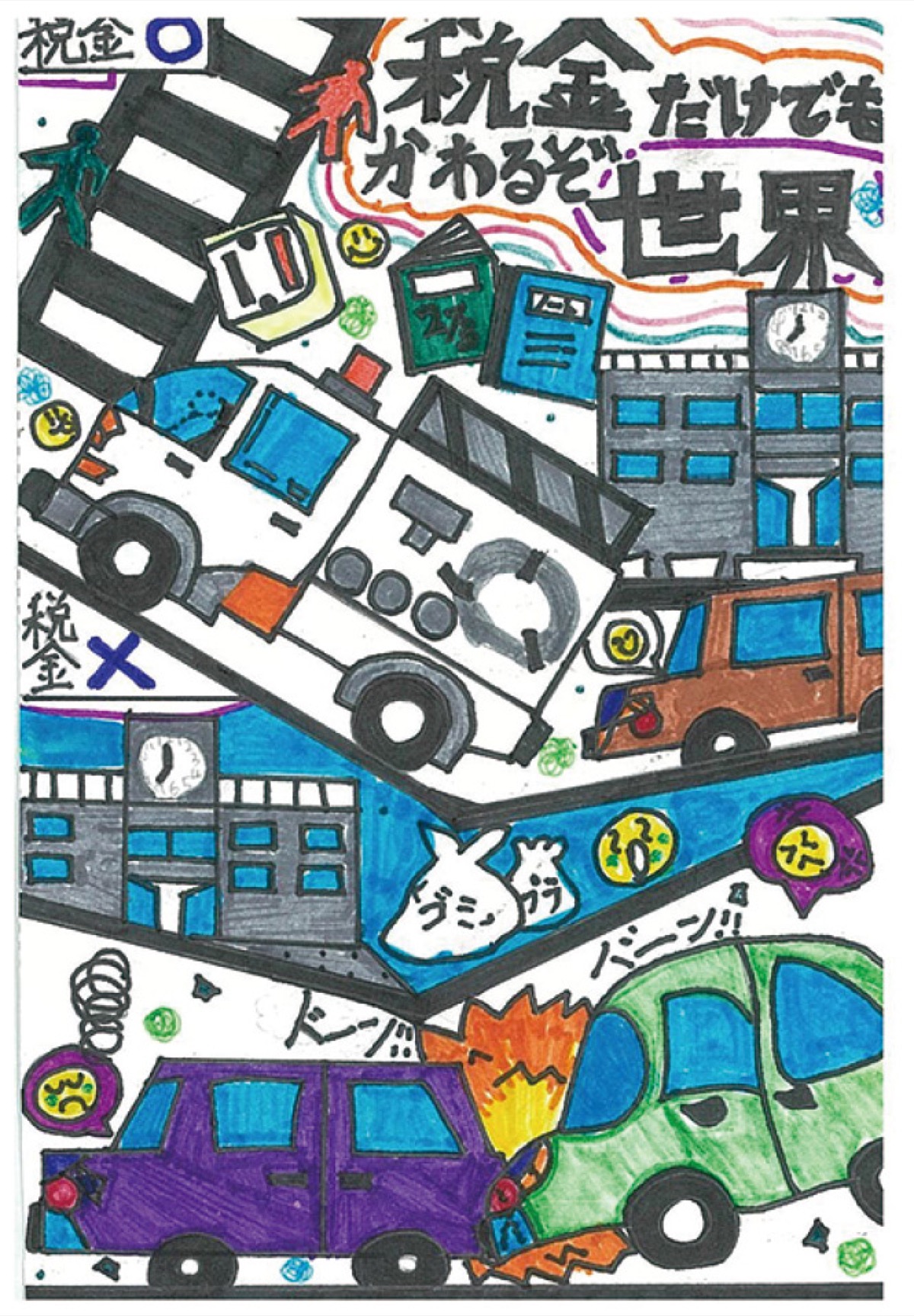 これは租税教室を開催し、社会で果たしている税の役割、重要性を正しく理解してもらい、感じたことを絵はがきで表現してもらおうと小学生を対象に行っている。