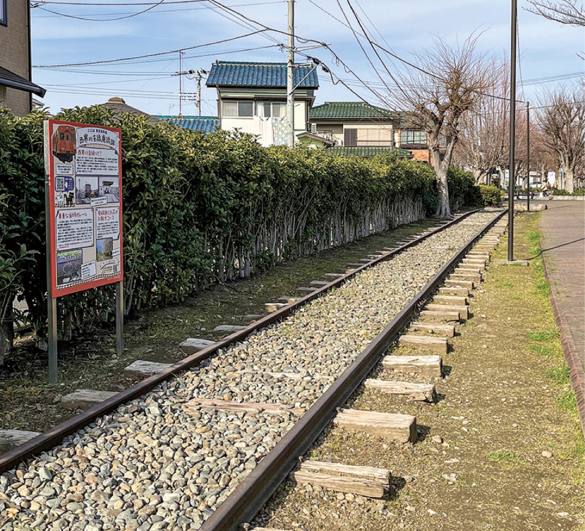 また、同支線の終着駅だった西寒川駅跡には20mほどレールが残り、現在は八角広場(一之宮6の2)として整備されている。同協会では、「西寒川支線の歴史をもっと知ってほしい」と、公園を管理する町の許可を得て、案内図を設置した。