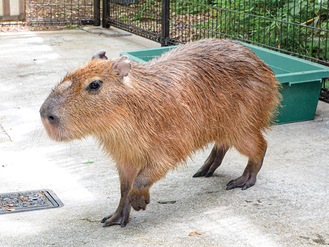 平塚市総合公園(平塚市大原1)のふれあい動物園に5月1日から新たなカピバラがお目見えし、来園者の視線を集めている。