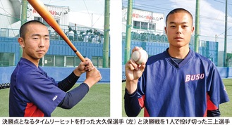 このほど開催された神奈川県高校野球春季大会で42年ぶりに優勝し、40年ぶりの関東大会出場を決めた武相高校(横浜市港北区)。県大会を勝ち抜いた裏に、寒川在住の2人の選手の活躍があった。決勝戦でタイムリーヒットを打った大久保快人選手(岡田・3年)と、強豪相手に一人で投げ切った三上煌貴(こうき)選手(倉見・2年)だ。
