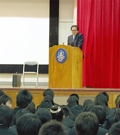 前経済産業審議官の石毛博行さんが先月22日、江南高校(羽生晴男校長)を訪れ、国際舞台で活躍できる人材になるよう、高校生に呼びかけた。