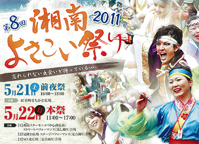 県内外のよさこいチームが集う湘南よさこい祭りが、今月22日(日)に中心商店街周辺で開催される。時間は11時30分から17時。
