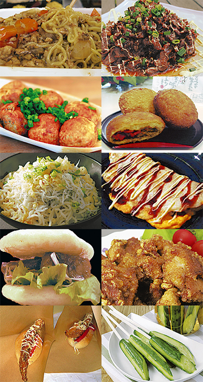 ▽さばとろめん(平塚地産地消食育研究会)▽平塚カルビ(肉の石川)▽しらすボール(平塚商工会議所青年部)▽弦斎カレーパン(高久製パン(株))▽湘南カオリ麺(料理飲食業組合)▽湘南しらすのはさみ焼き(湘南ひらつか太古の湯グリーンサウナ)▽弦斎バーガー(割烹竹万)▽湘南こっこ唐揚げ(鳥仲商店)▽SunSunサバドック(SunSunマルシェ)▽七夕きゅうりばー((社)平塚青年会議所)