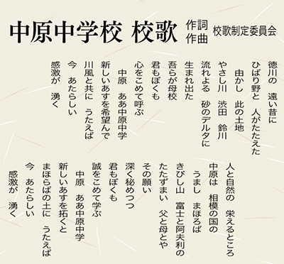 作詞・作曲を手がけたのは当時初代校長として赴任してきた佐野隆蔵氏。今から30年前の同校のあたりは、見渡すかぎり田畑が続いていて見晴らしもとても良かった。そんな情景の中にある渋田川と鈴川の2本の川をイメージの中心とし、校歌の中に詠み込んだという。