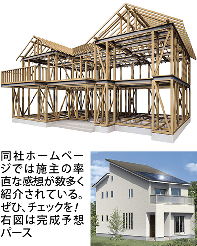 構造がしっかりしているからこそ、在来木造工法では難しかった20畳を超える広々リビングや、窓を広くとった大開口設計など、間取りの自由度が高いのも同社の特長だ。オール電化を標準装備とし、キッチンなどの水廻りや設備はパナソニックブランドを使う。