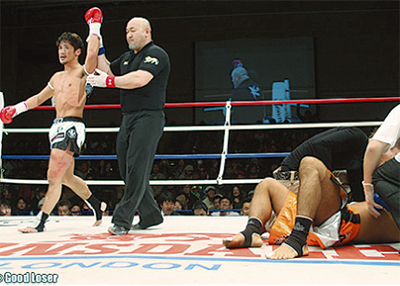 平塚出身の格闘家、尾崎圭司選手(チームドラゴン所属)が9日、打撃系格闘技イベント「Krush.15」(東京・後楽園ホール)で、総合格闘家の服部浩典選手をKOで撃破した。