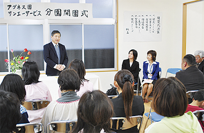 社会福祉法人小百合会は、田村の障がい児通園施設・アグネス園の分園(田村4-22-7)を開設し、11日に開園式を行った。