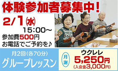 同教室では新クラスの生徒を募集中。「途中から入るとまわりについていけるか不安…」という人も、一緒にスタートする仲間とのグループレッスン(月2回・各70分)だから身構えずに始められる。まずは体験会で楽器を弾く楽しさに触れてみては?他日程も有り。