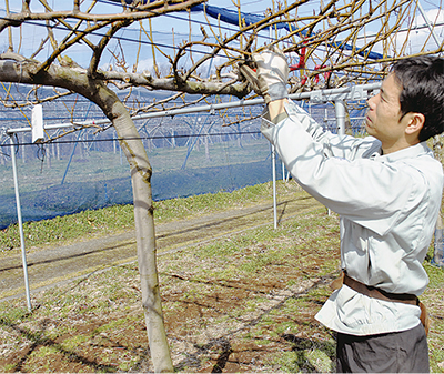 そこで考案されたのが、樹体ジョイント仕立て法だ。従来の半分の年数で収穫量を回復し、初心者でも40%の作業時間短縮が図れるのだという。
