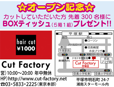 都内を中心に全国に100店舗以上を構える「カットファクトリー」が、遂に平塚に初上陸をする。